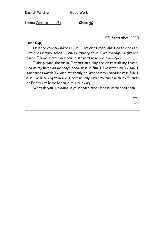 4B WONG TSZ HO_Writing - An email to my pen friend