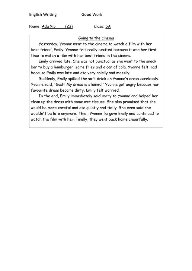 5A YIP SZE CHING_Writing - Going to the cinema
