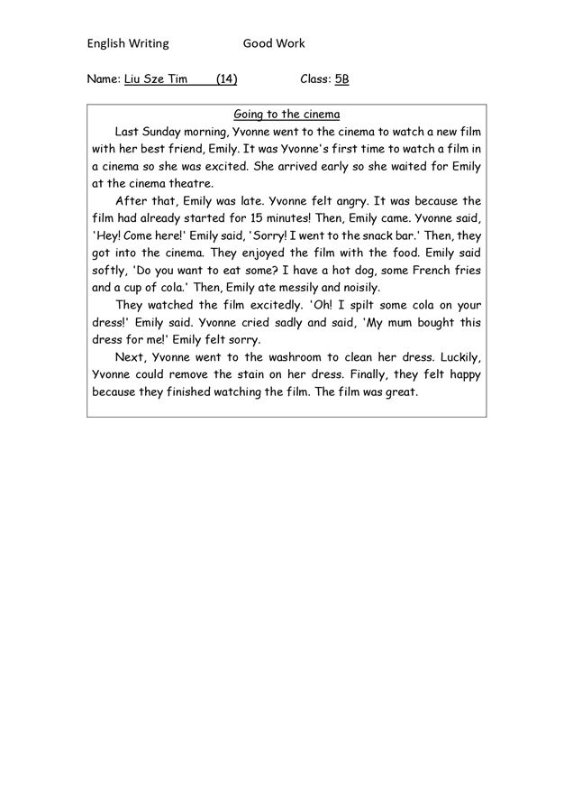 5B LIU SZE TIM_Writing - Going to the cinema