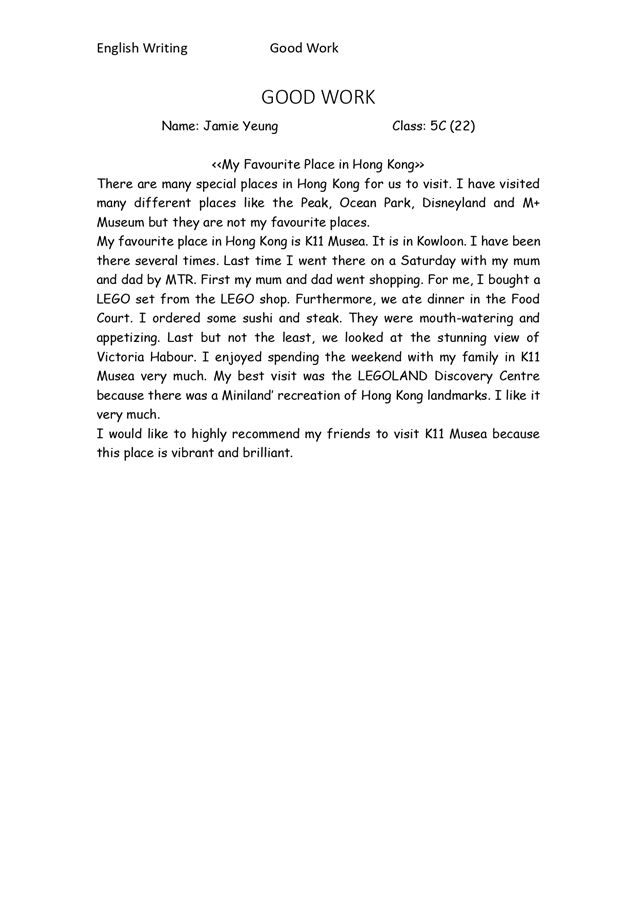 5C YEUNG LOK HEI_Writing - My Favourite Place in Hong Kong