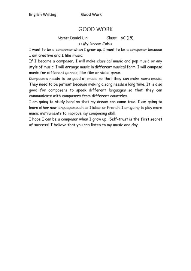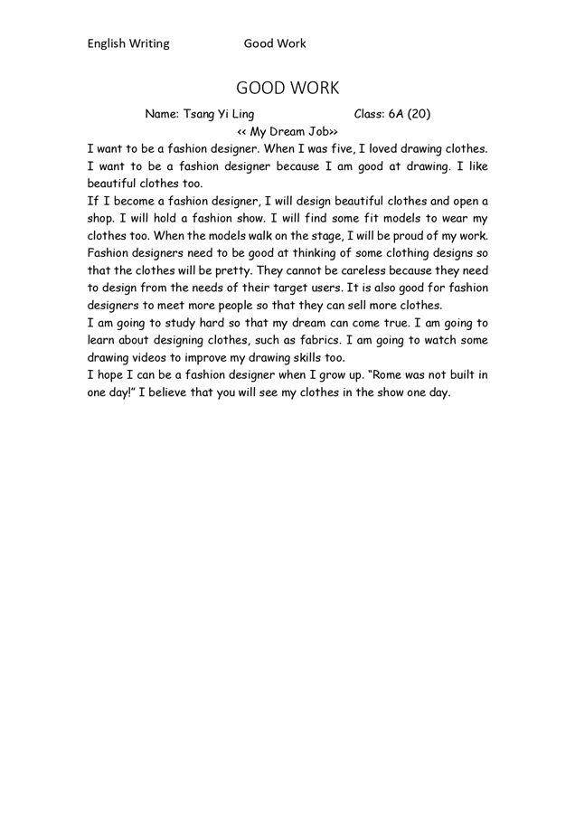 6A TSANG YI LING_Writing - My Dream Job