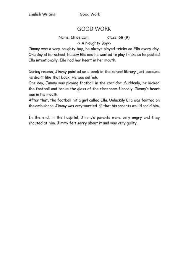 6B LAM YUN YAN_Writing - A Naughty Boy