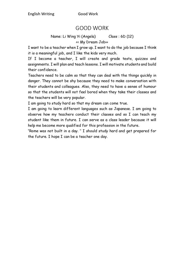 6D LI WING YI_Writing - My Dream Job