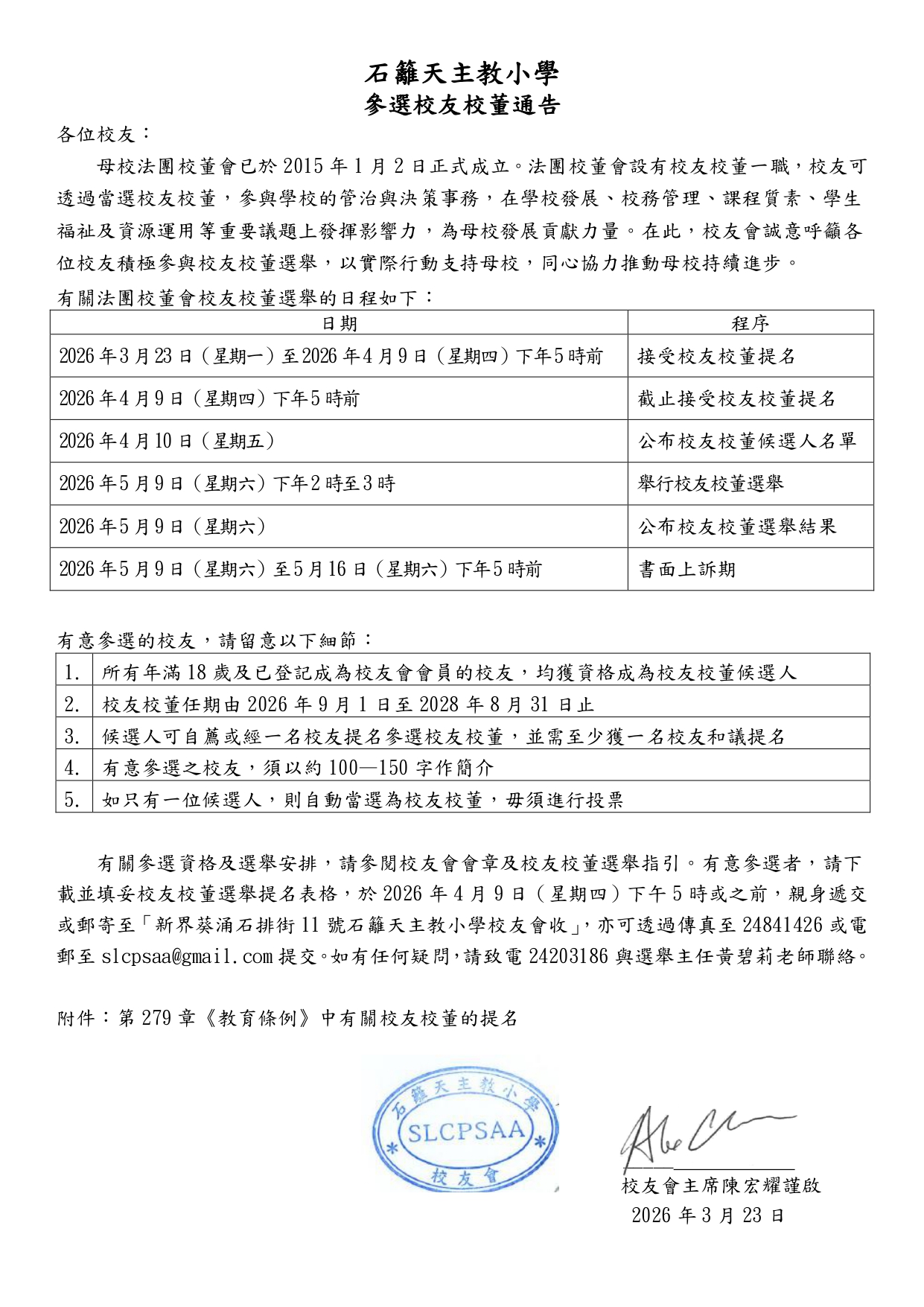 2024-2026年度校友校董選舉通告 <點按圖片以放大>
